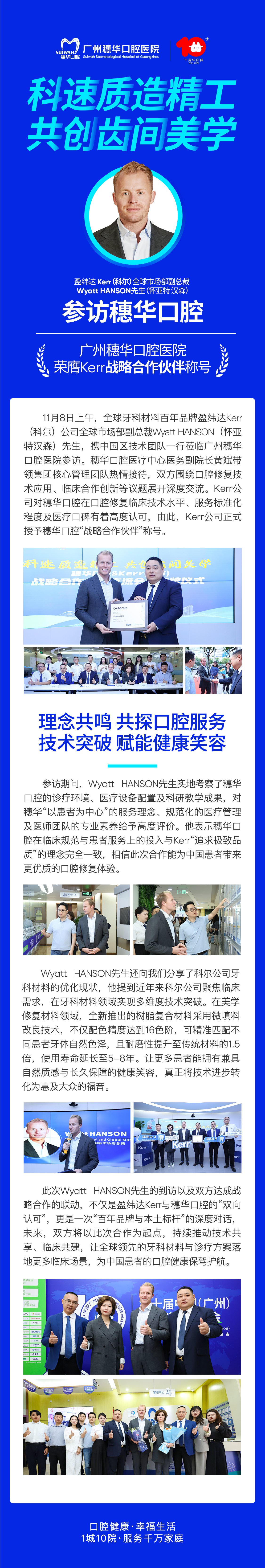 科速質(zhì)造精工 共創(chuàng)齒間美學(xué) | 科爾全球市場部副總裁Wyatt HANSON參訪,廣州穗華口腔醫(yī)院榮膺Kerr戰(zhàn)略合作伙伴稱號......